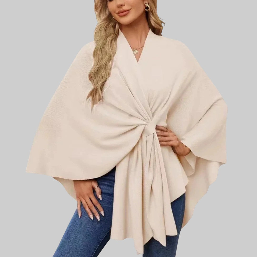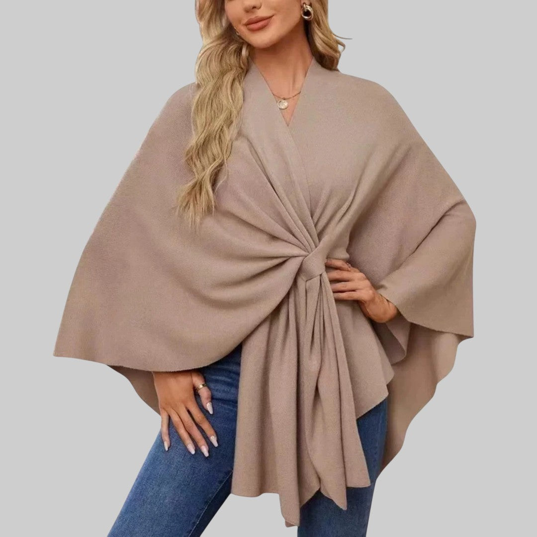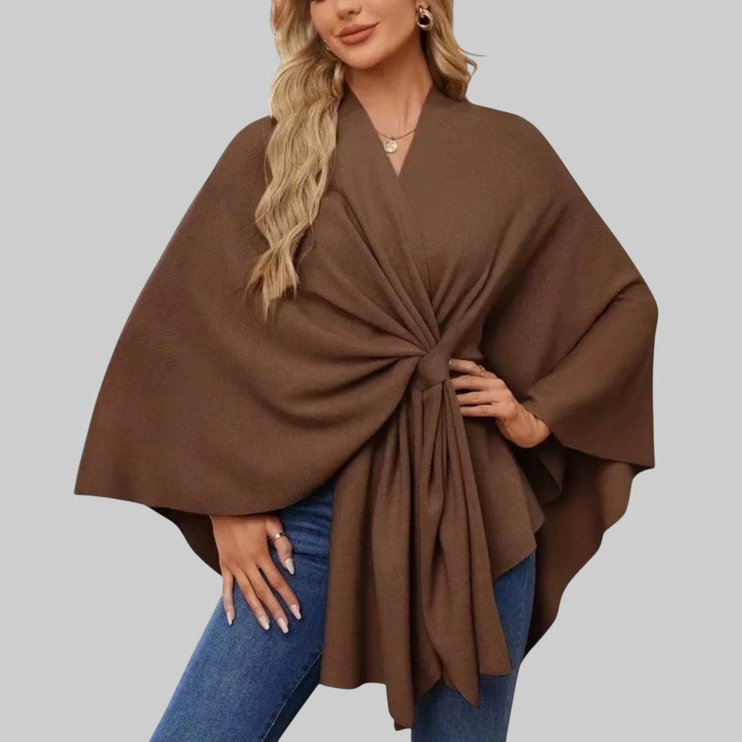 Този меко спускащ се плащ е истински акцент при стилни изяви – независимо дали за всекидневието или за специални поводи. Художественият възел отпред създава изискан ефект на драпировка, докато свободният силует предлага максимална свобода на движение. Моден statement, който перфектно съчетава комфорт и елегантност.